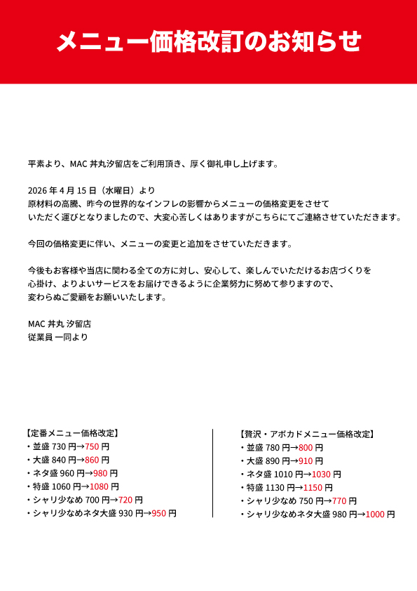 美味しい海鮮丼や創作丼だけではなく、革新的なサービスなど新しい物へと日々取り組んでおります。
