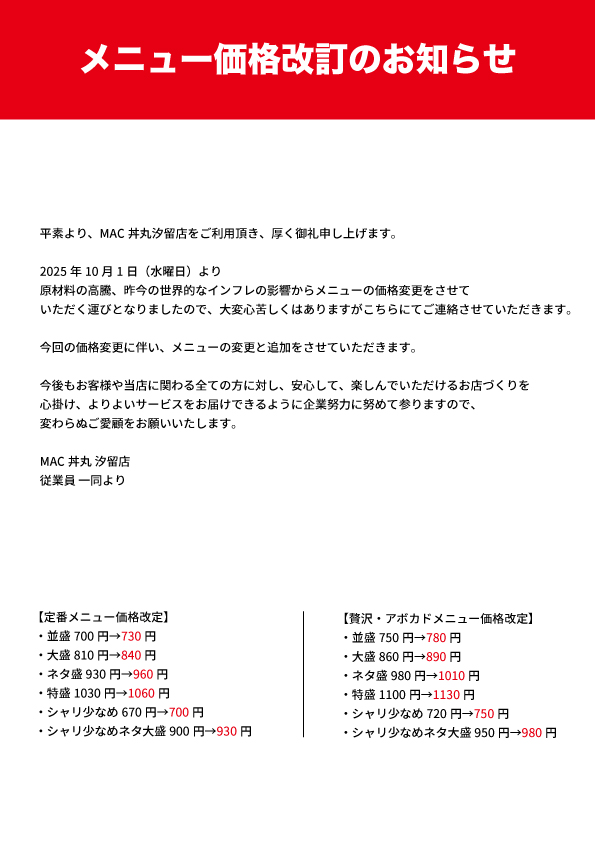 値上げ広告