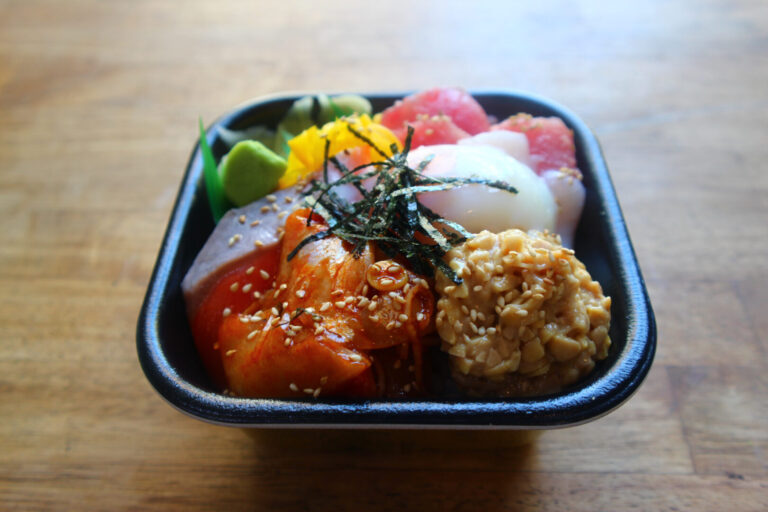 真鯛切り落とし・鮪切り落とし・イカ・サーモン・納豆・温玉