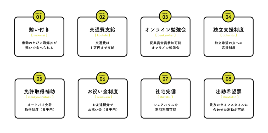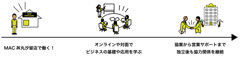 まずは汐留店で1日働いてから、正式な入店を決める事も可能です。”働いてみないとわからない”を解決する、MAC丼丸のシステムです。